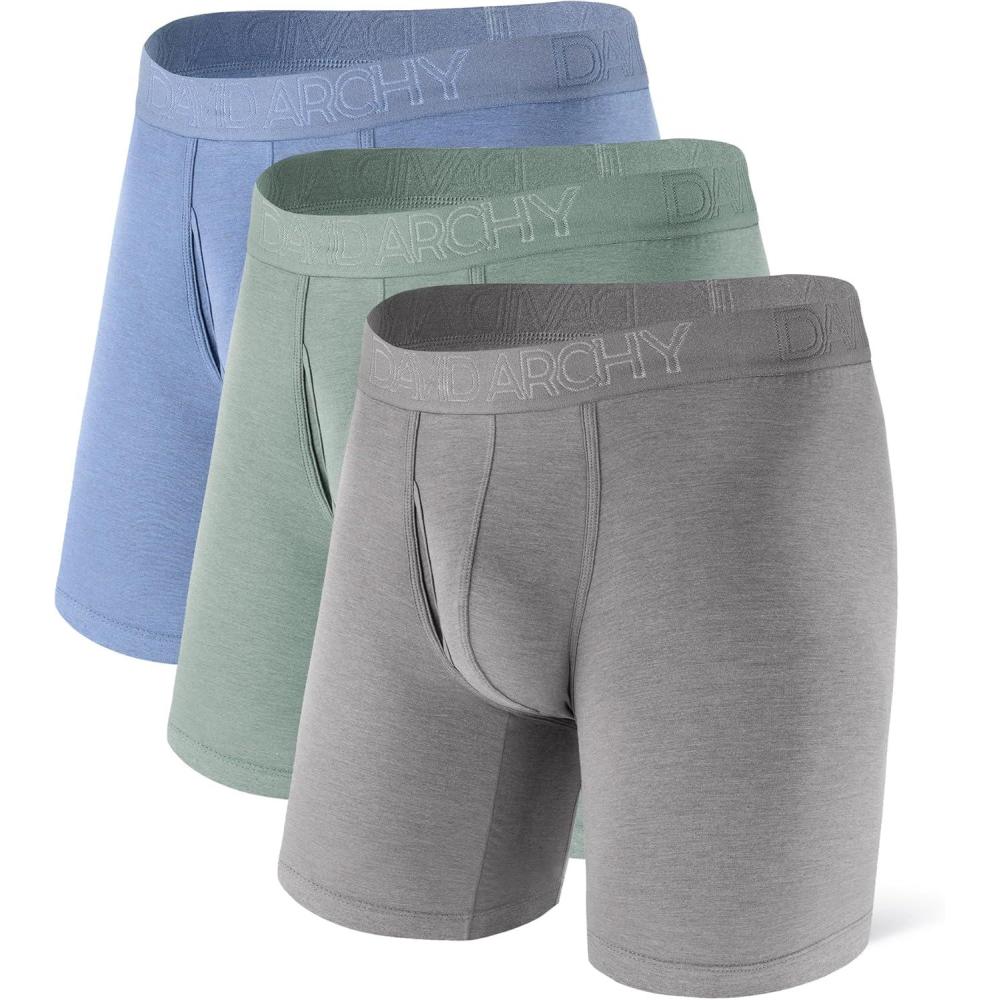 imageDAVID ARCHY Mens Underwear Boxer Briefs Breathable Soft MoistureWicking with Fly Underwear for Men MultipackE5  Long Leg 8  GrayBlueGreen  3 Pack