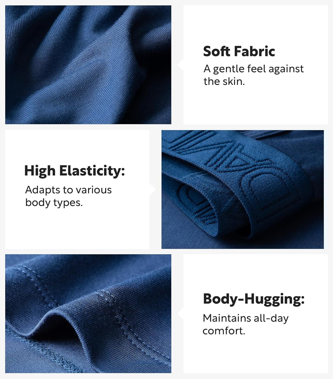 DAVID ARCHY Mens Underwear Boxer Briefs Breathable Soft Moisture-Wicking with Fly Underwear for Men Multipack(A7 5.5” Navy Blue/Airy Blue 4 Pack)