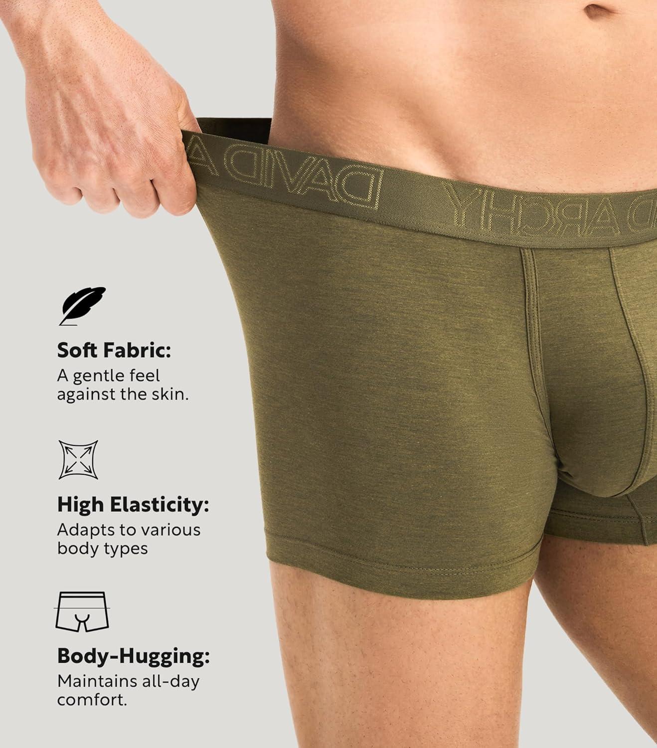 DAVID ARCHY Mens Underwear Boxer Briefs Breathable Soft Moisture-Wicking with Fly Underwear for Men Multipack(F4 short Leg 3.5″ Dark Blue/Dark Brown/Olive Green/Dark Gray)