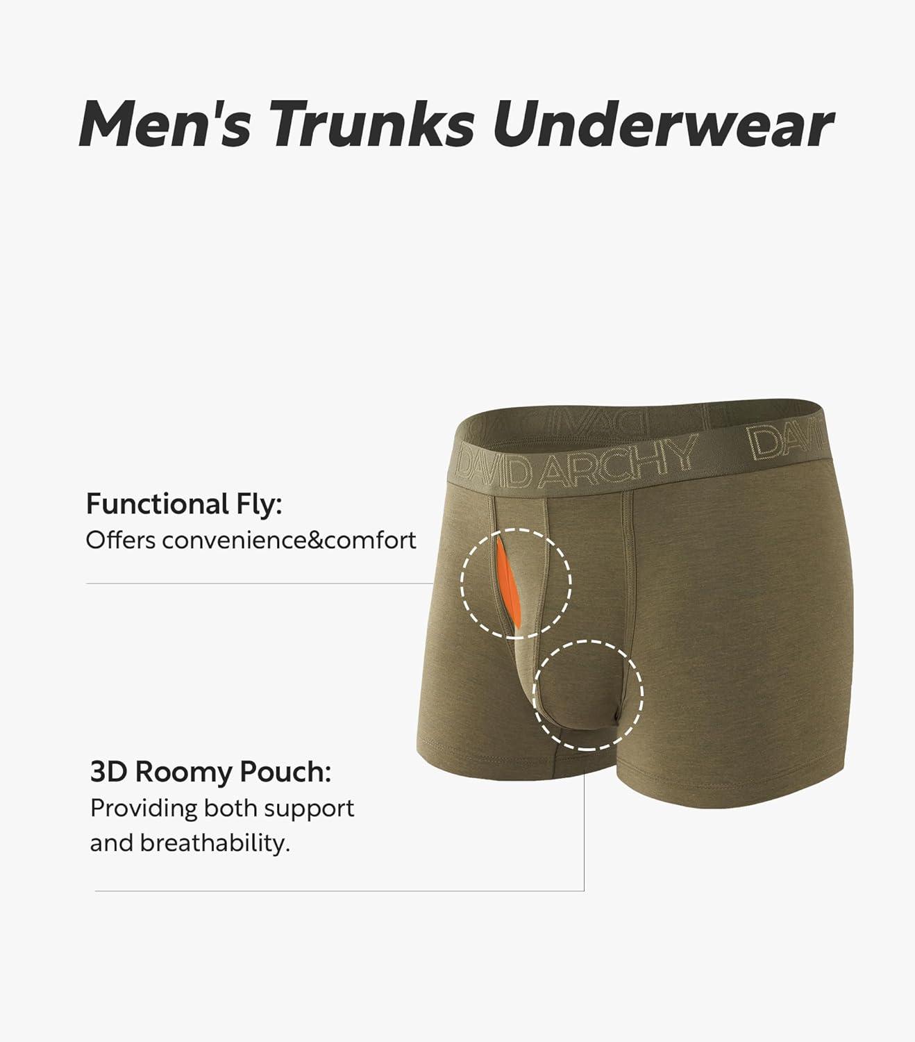 DAVID ARCHY Mens Underwear Boxer Briefs Breathable Soft Moisture-Wicking with Fly Underwear for Men Multipack(F4 short Leg 3.5" Dark Blue/Dark Brown/Olive Green/Dark Gray)