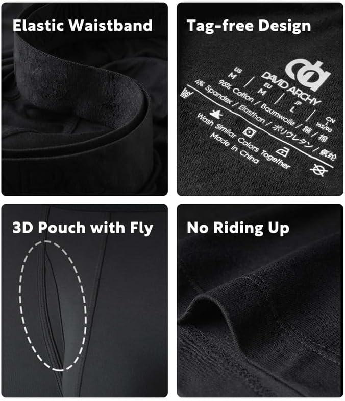DAVID ARCHY Men’s Underwear Boxer Briefs Cotton Comfortbale Soft Breathable with Fly Underwear for Men 6 Pack(A4 black/Dark Blue/Navy Blue/Bule – in 4 Pack)