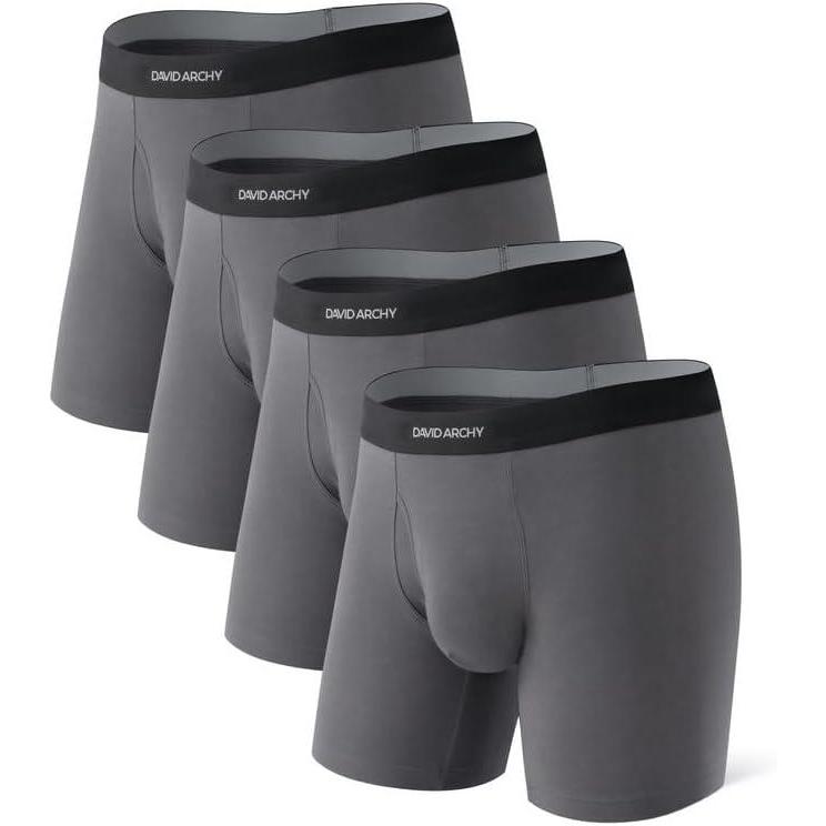 DAVID ARCHY Men’s Underwear Boxer Briefs Cotton Comfortbale Soft Breathable with Fly Underwear for Men 6 Pack(A5 dark Gray – in 4 Pack)