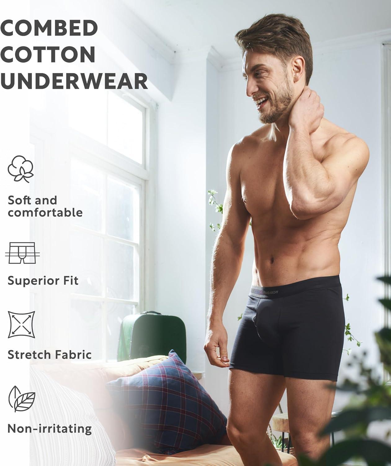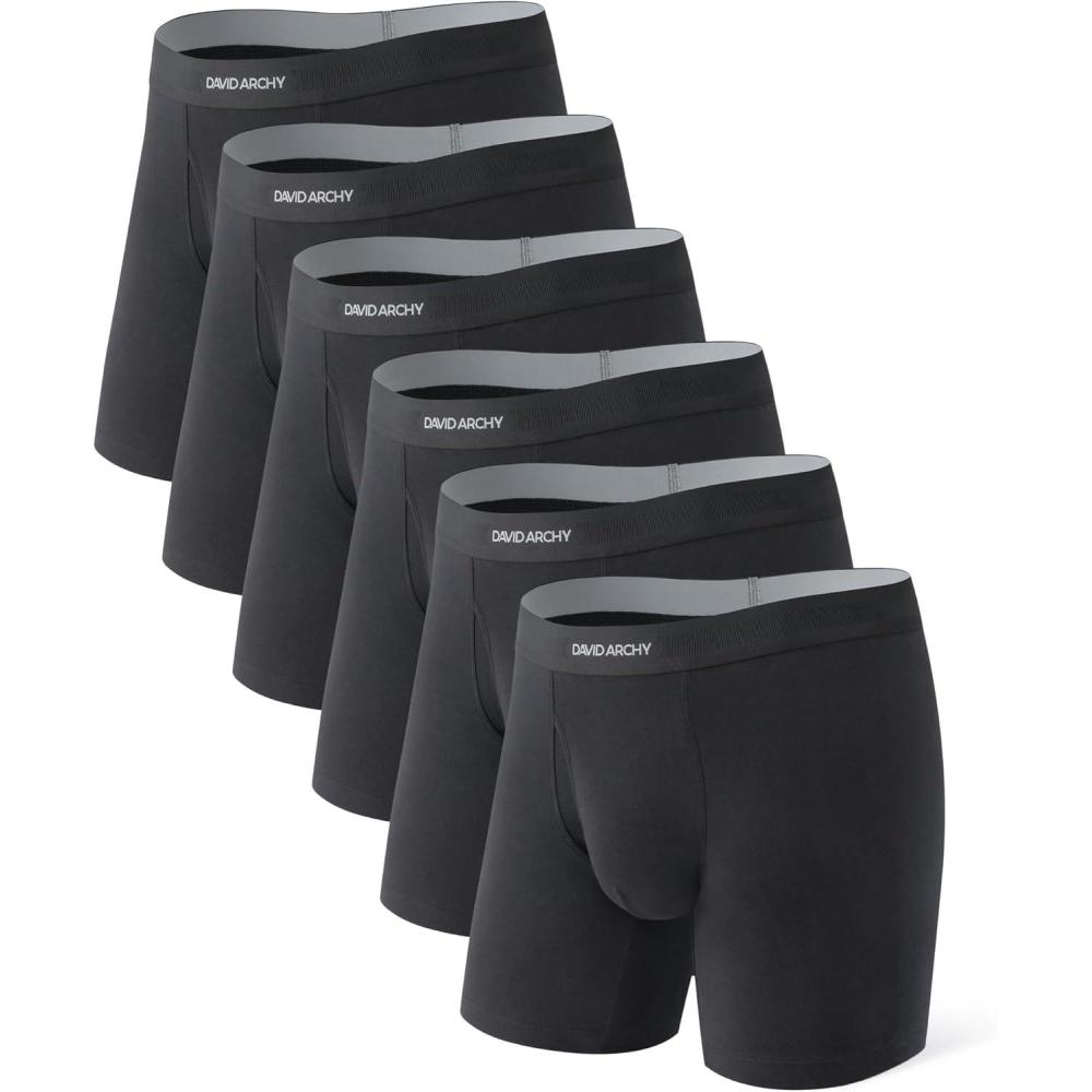 DAVID ARCHY Men’s Underwear Boxer Briefs Cotton Comfortbale Soft Breathable with Fly Underwear for Men 6 Pack(B2 black – in 6 Pack)