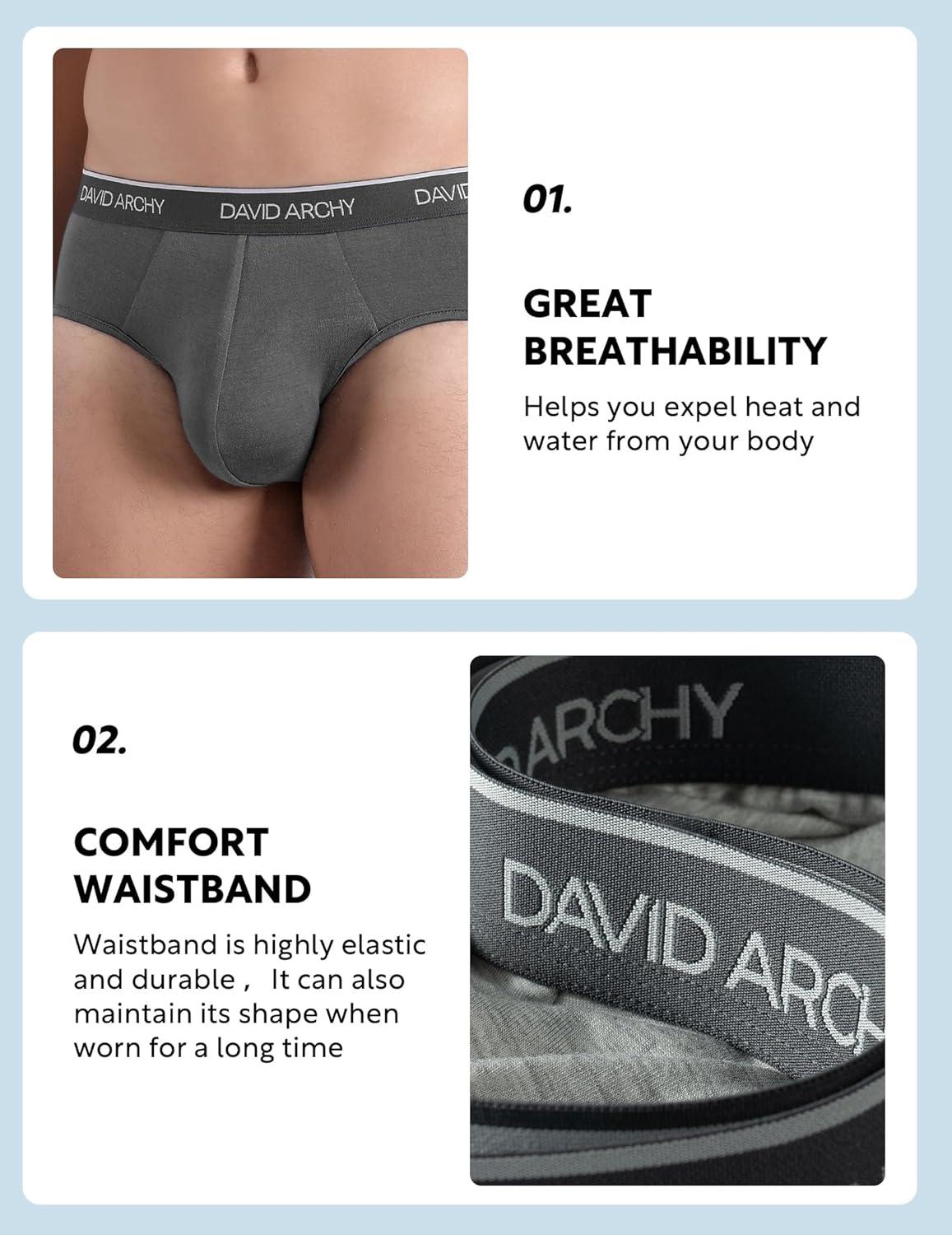 DAVID ARCHY Men’s Underwear Briefs Rayon Made from Bamboo Wicking-Moisture Support Pouch Soft Underwear for Men 4 or 7 Pack(Grey Blue/Dark Blue/Olive Green/Black/Dark Grey/Deep Grape Purple/Grey Purple)