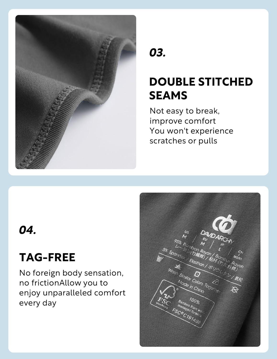 imageDAVID ARCHY Mens Underwear Briefs Rayon Made from Bamboo WickingMoisture Support Pouch Soft Underwear for Men 4 or 7 PackLight BlueGrey BlueGrey GreenMedium Grey