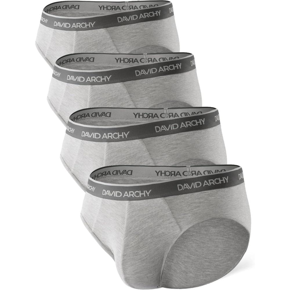DAVID ARCHY Men's Underwear Briefs Rayon Made from Bamboo Wicking-Moisture Support Pouch Soft Underwear for Men 4 or 7 Pack(Heather Gray-4 Pack)