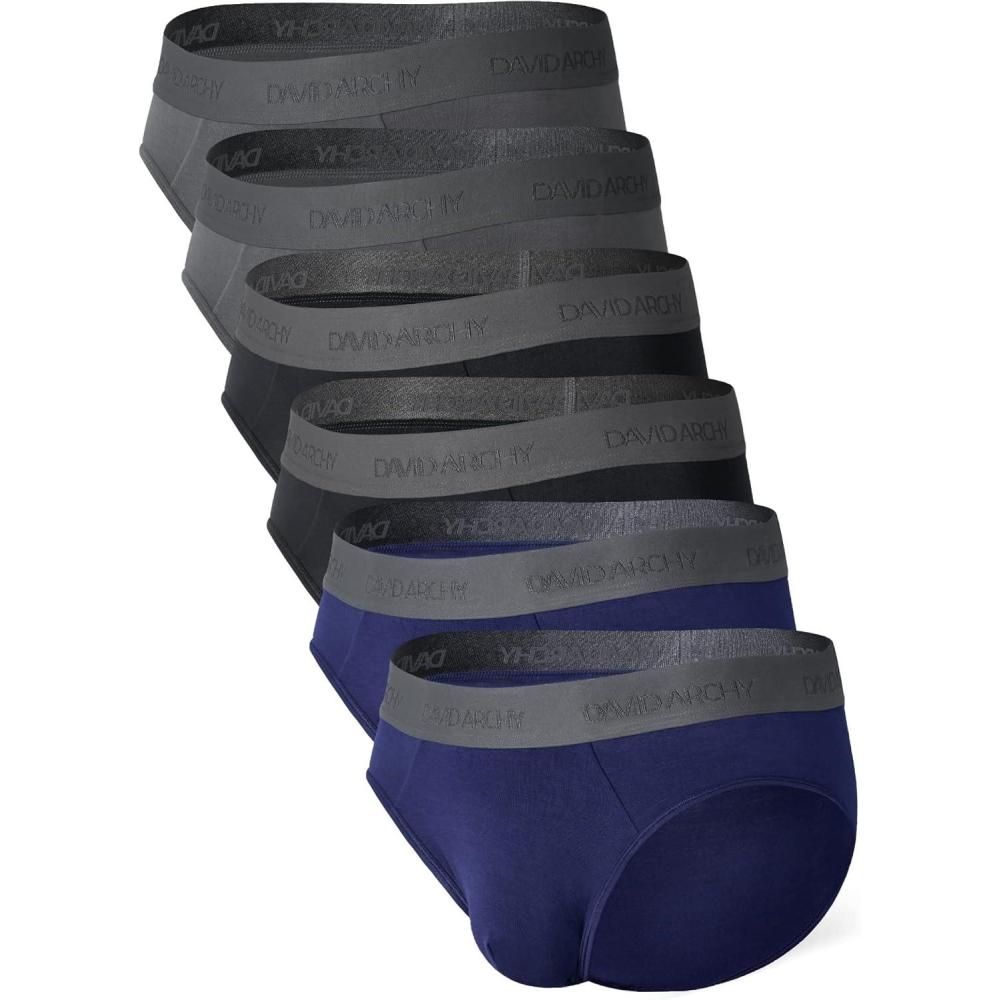DAVID ARCHY Men’s Underwear Briefs Rayon Made from Bamboo Wicking-Moisture Support Pouch Soft Underwear for Men 4 or 7 Pack(Navy Blue/Black/Dark Gray-no Fly-6 Pack)