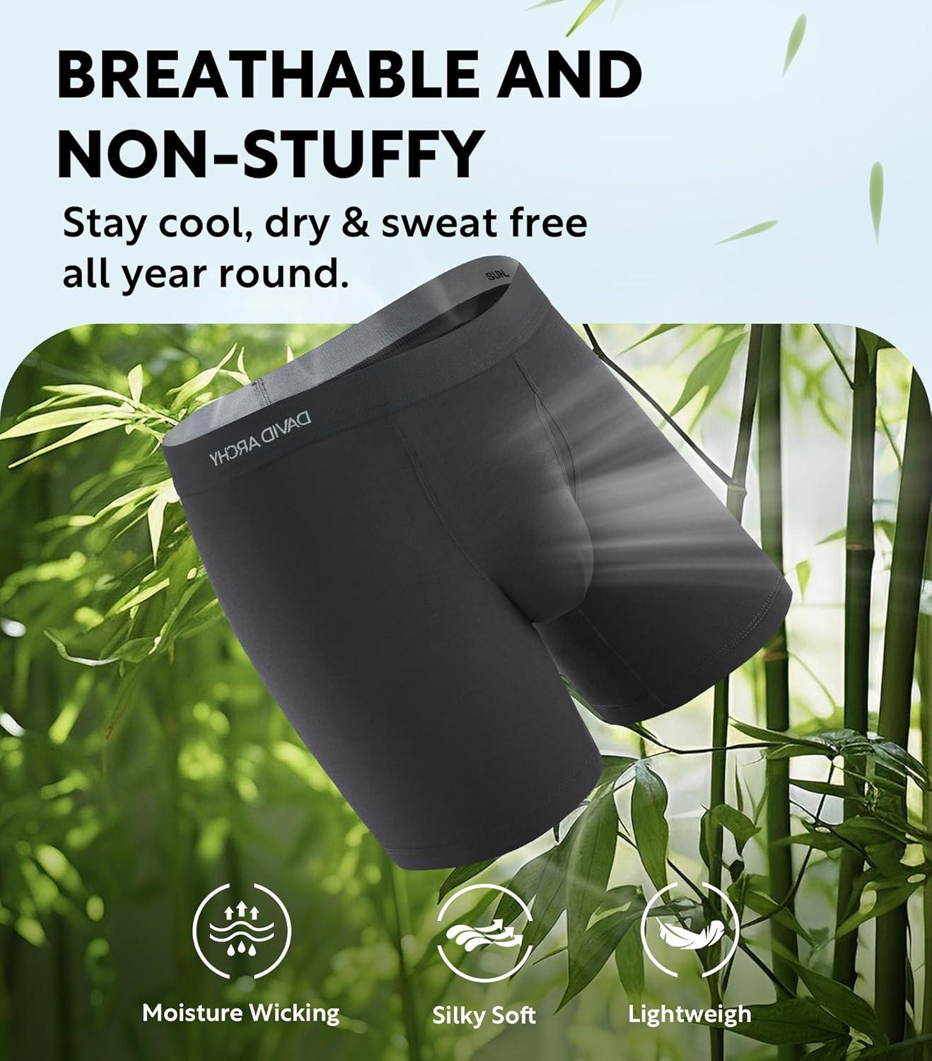 DAVID ARCHY Mens Underwear Rayon Made from Bamboo 7-Pack, Wicking-Moisture & Cool Boxer Briefs with Support Pouch(Black - 6.5'' in 7 Pack)