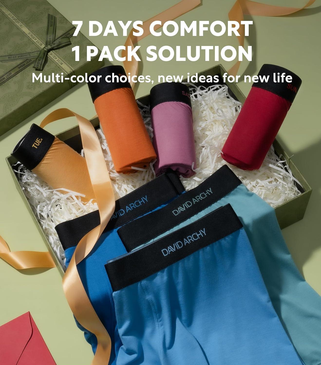 DAVID ARCHY Mens Underwear Rayon Made from Bamboo 7-Pack, Wicking-Moisture & Cool Boxer Briefs with Support Pouch(Colorful – 3.5” in 7 Pack)
