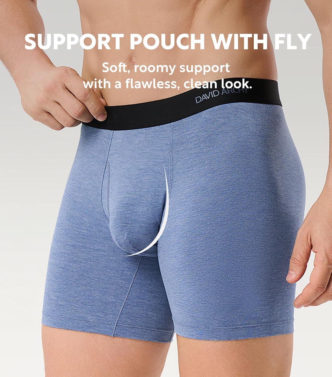 DAVID ARCHY Mens Underwear Rayon Made from Bamboo 7-Pack, Wicking-Moisture & Cool Boxer Briefs with Support Pouch(Seven Colors – 6.5” in 7 Pack)