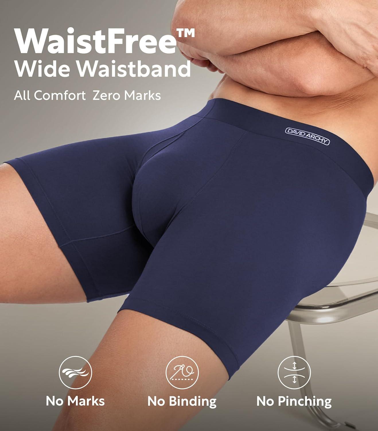 imageDAVID ARCHY Mens Underwear Silky Soft Second Skin Modal Boxer Briefs Waistfree Seamless Waistband Underwear for Men Pack of 4BlackNavy BlueDark GrayWine Red