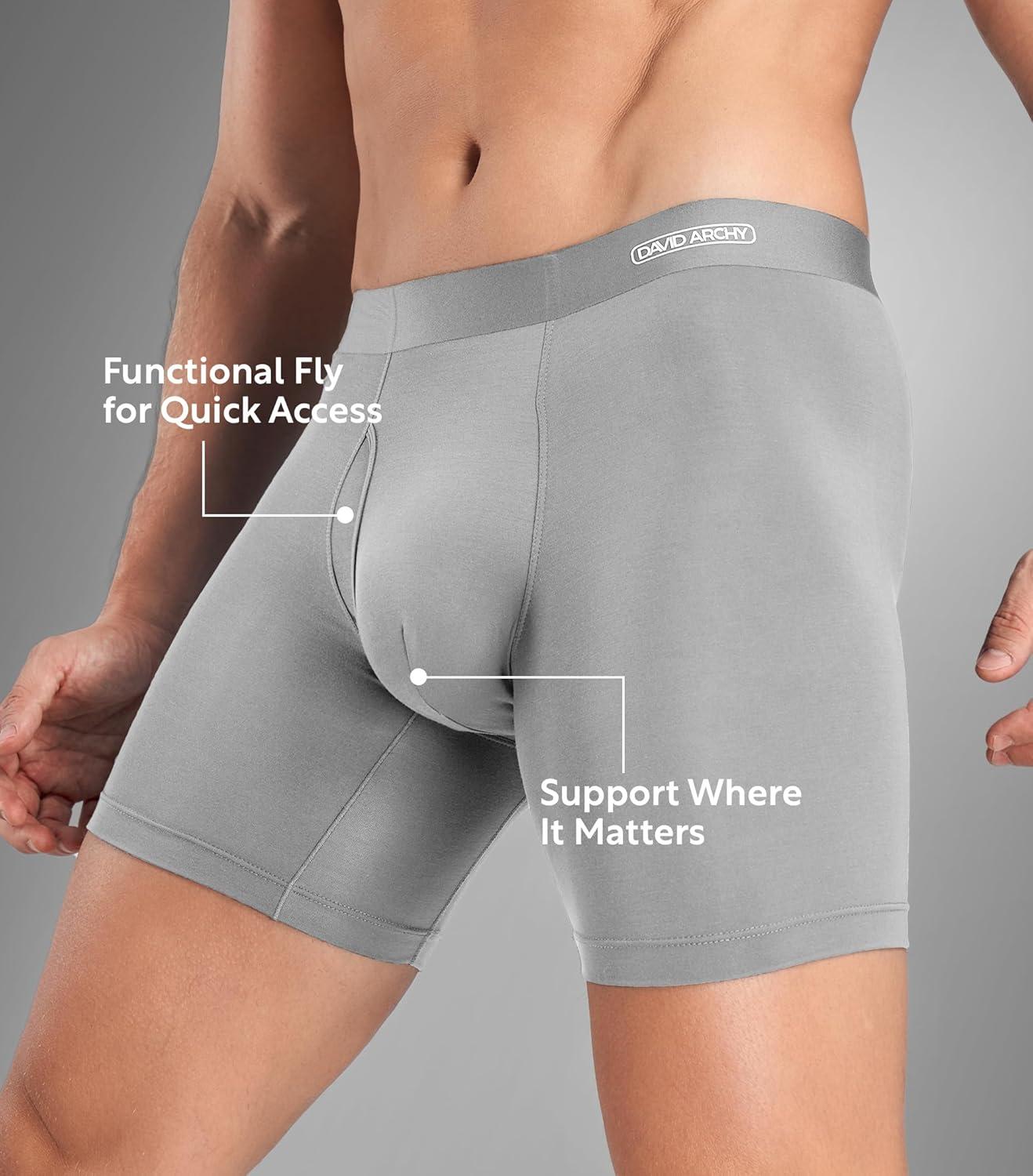 DAVID ARCHY Men’s Underwear Breathable Rayon Made from Bamboo Boxer Briefs for Men 4 Pack with Fly(Black Grey/Olive Green/Black/Grey)