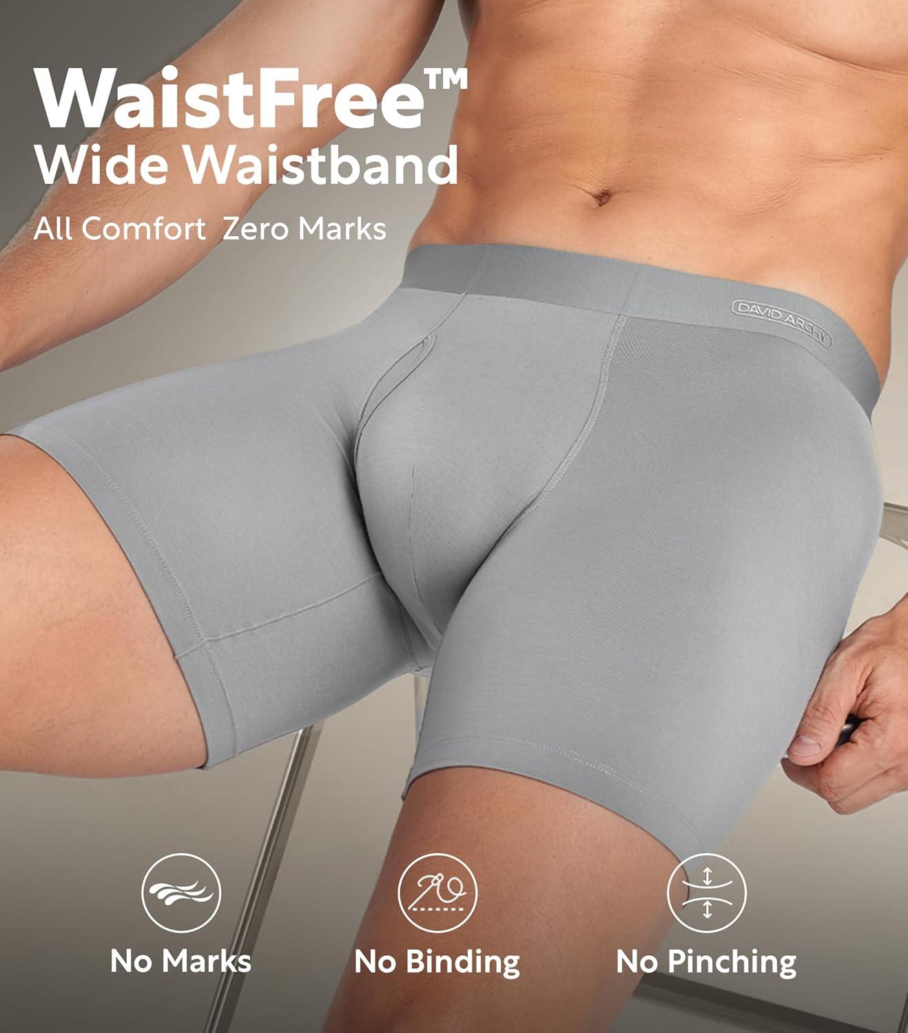 imageDAVID ARCHY Mens Underwear Silky Soft Second Skin Modal Boxer Briefs Waistfree Seamless Waistband Underwear for Men Pack of 4BlackNavy BlueDark GrayWine Red