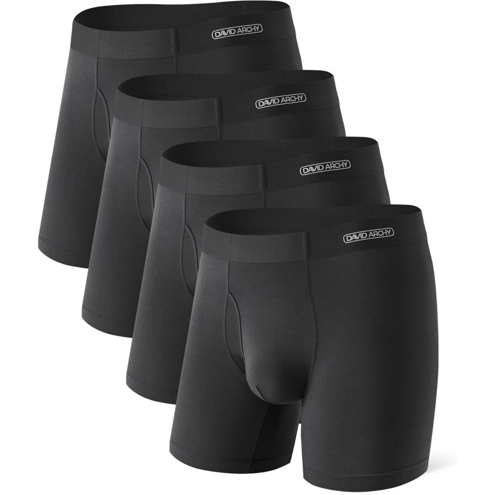 DAVID ARCHY Mens Underwear Silky Soft Second Skin Modal Boxer Briefs Waistfree Seamless Waistband Underwear for Men Pack of 4(Black)