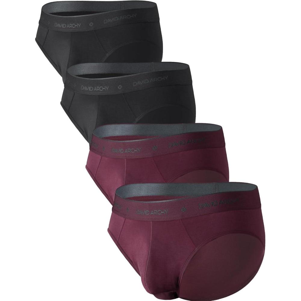 DAVID ARCHY Men's Underwear Ultra Soft Modal Dual Pouch Briefs Support Comfortable lightweight Briefs for Men 4 or 7 Pack(Black/Deep Grape Purple)