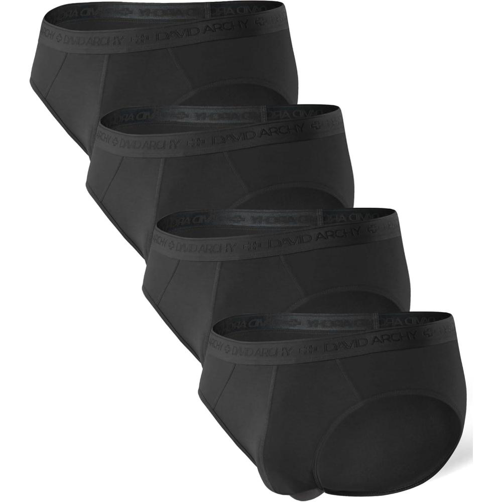 DAVID ARCHY Men's Underwear Ultra Soft Modal Dual Pouch Briefs Support Comfortable lightweight Briefs for Men 4 or 7 Pack(Black)