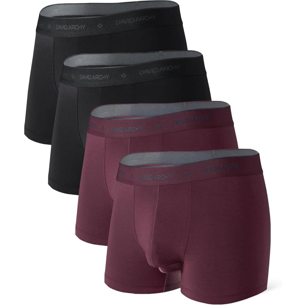 DAVID ARCHY Men’s Underwear Ultra Soft Modal Dual Pouch Trunks Ball Pouch Bulge Enhancing Boxer Briefs for Men 3 or 4 Pack(D1 Black/Deep Plum – 3.5″ in 4 Pack)