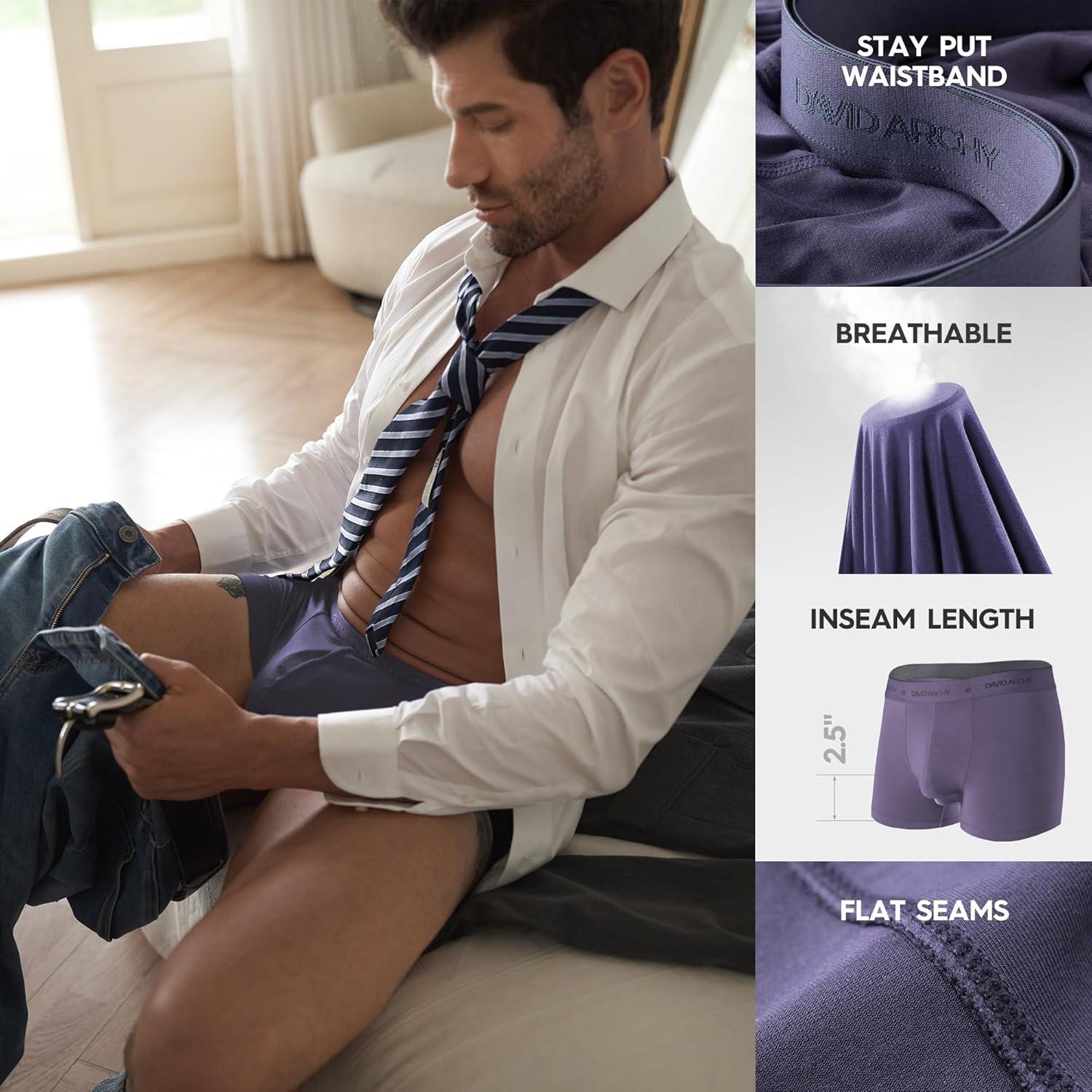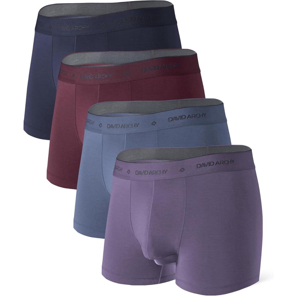DAVID ARCHY Men’s Underwear Ultra Soft Modal Dual Pouch Trunks Ball Pouch Bulge Enhancing Boxer Briefs for Men 3 or 4 Pack(D2 Navy/Plum/Slate Blue/Dusty Violet – 3.5″ in 4 Pack)