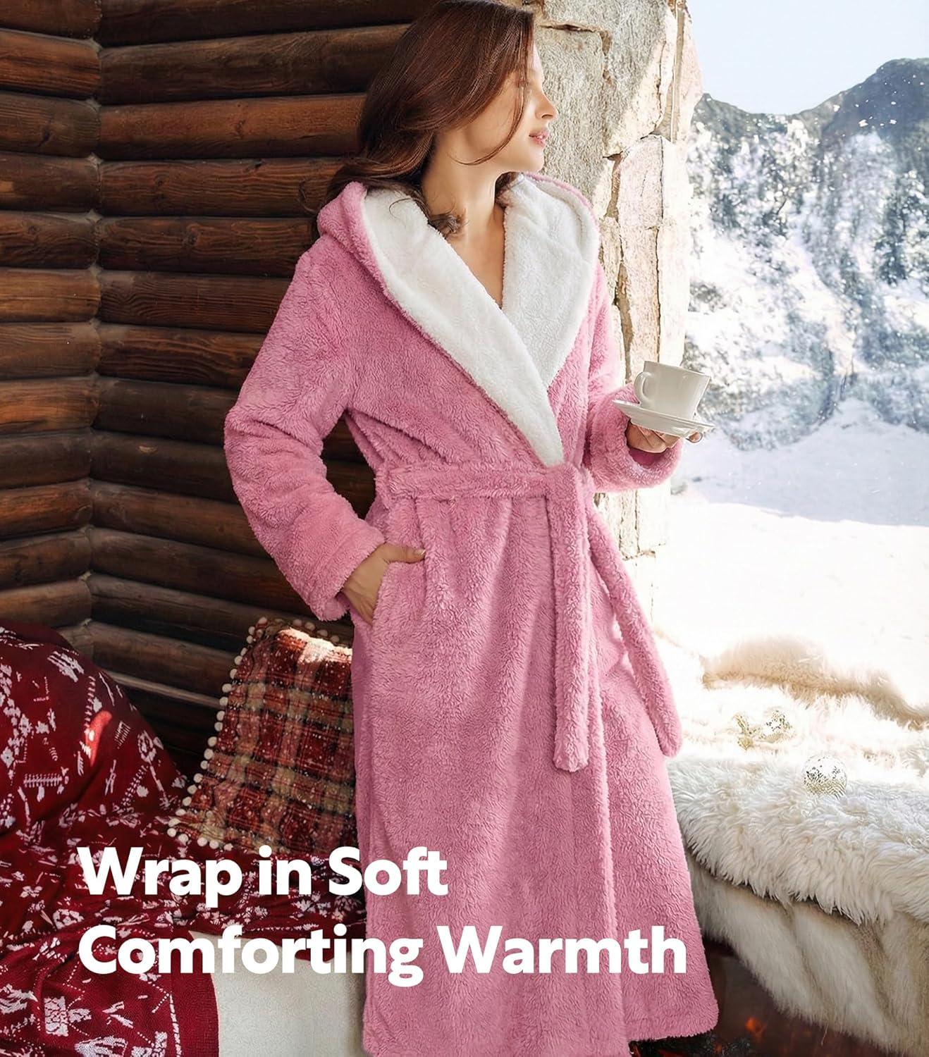 DAVID ARCHY Plush Robes for Women Warm Thick Fleece Fluffy Luxury Cozy Soft Hooded Bathrobe Winter House Full Length(A-purple Grey)