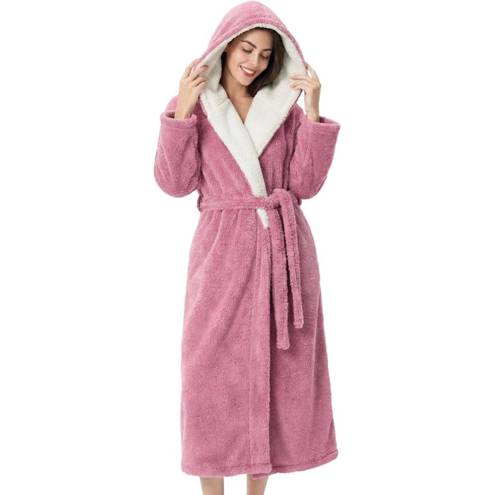 imageDAVID ARCHY Plush Robes for Women Warm Thick Fleece Fluffy Luxury Cozy Soft Hooded Bathrobe Winter House Full LengthApurple Grey