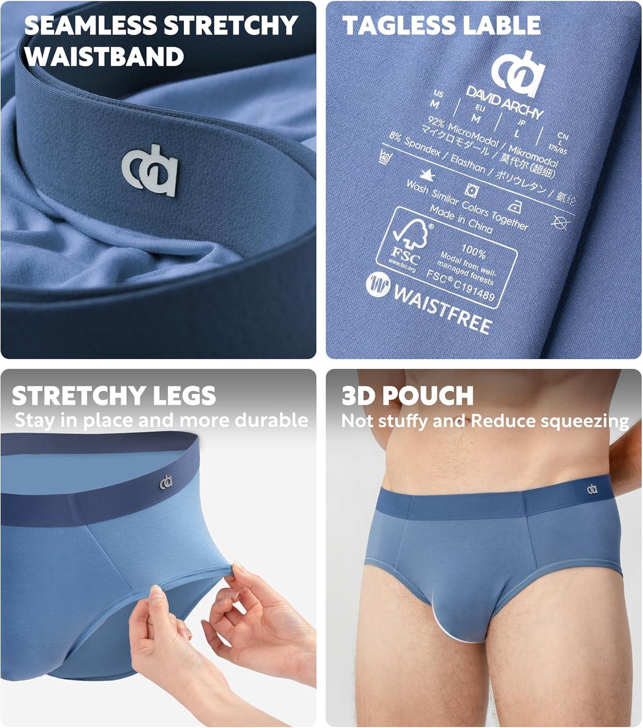DAVID ARCHY Seamless Men's Briefs Modal Ultra Soft Breathable No Fly Support Pouch Mens Underwear Briefs 4 Pack(Grey Blue/Black/Dark Grey/Grey Purple)