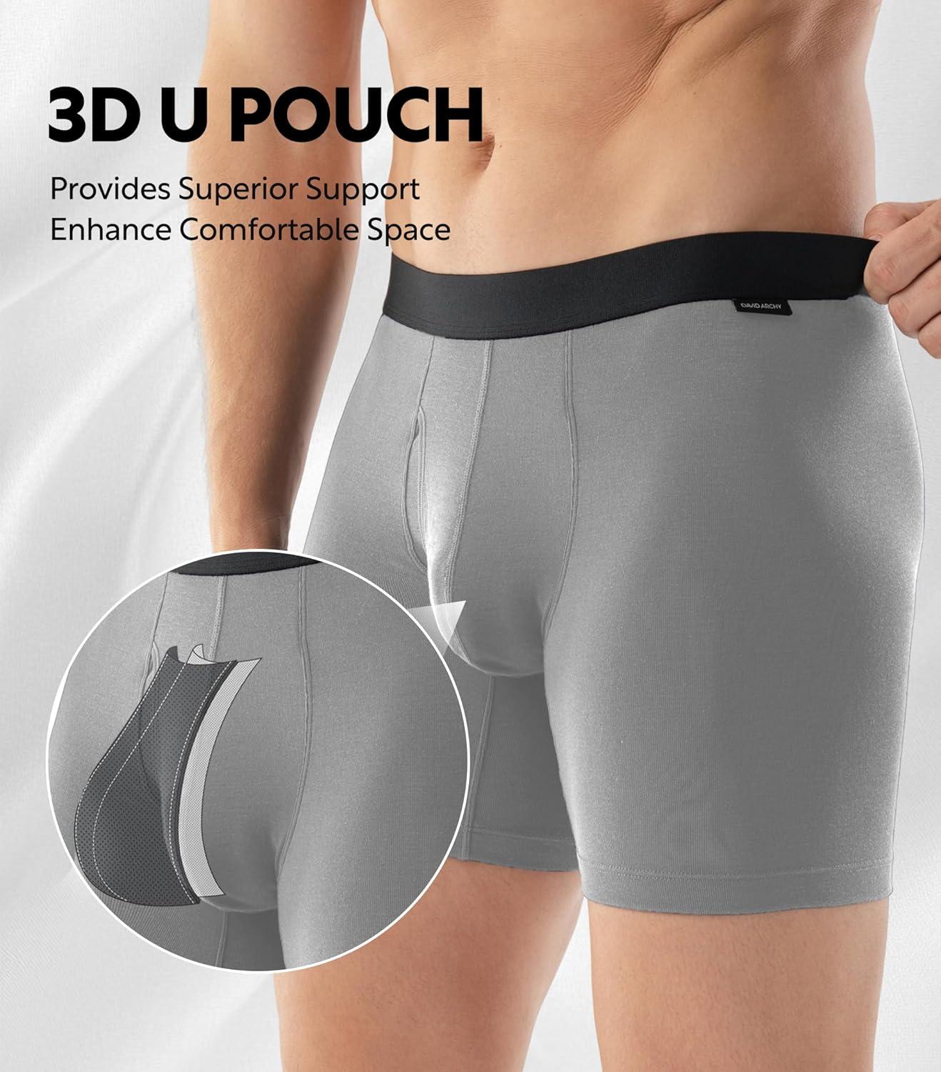 DAVID ARCHY Ultra Soft Modal Boxer Briefs with Supportive Pouch,4-Way Stretch & Breathable Underwear For Men(Black/Dark Blue/Dark Grey/Olive Green)