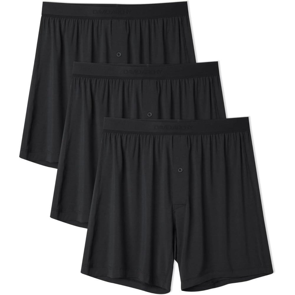 DAVID ARCHY Ultra Soft Modal Underwear Mens Boxer Shorts Loose Breathable Boxers for Men Pack(Black)