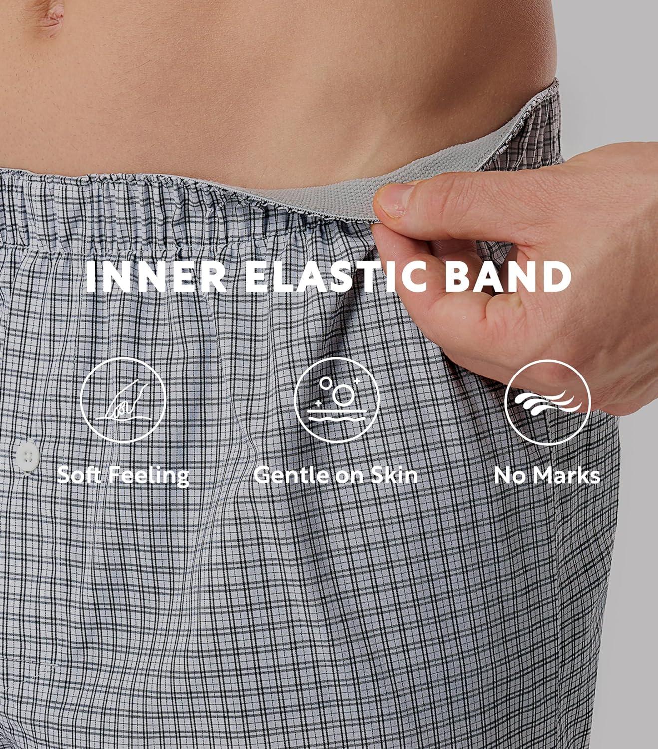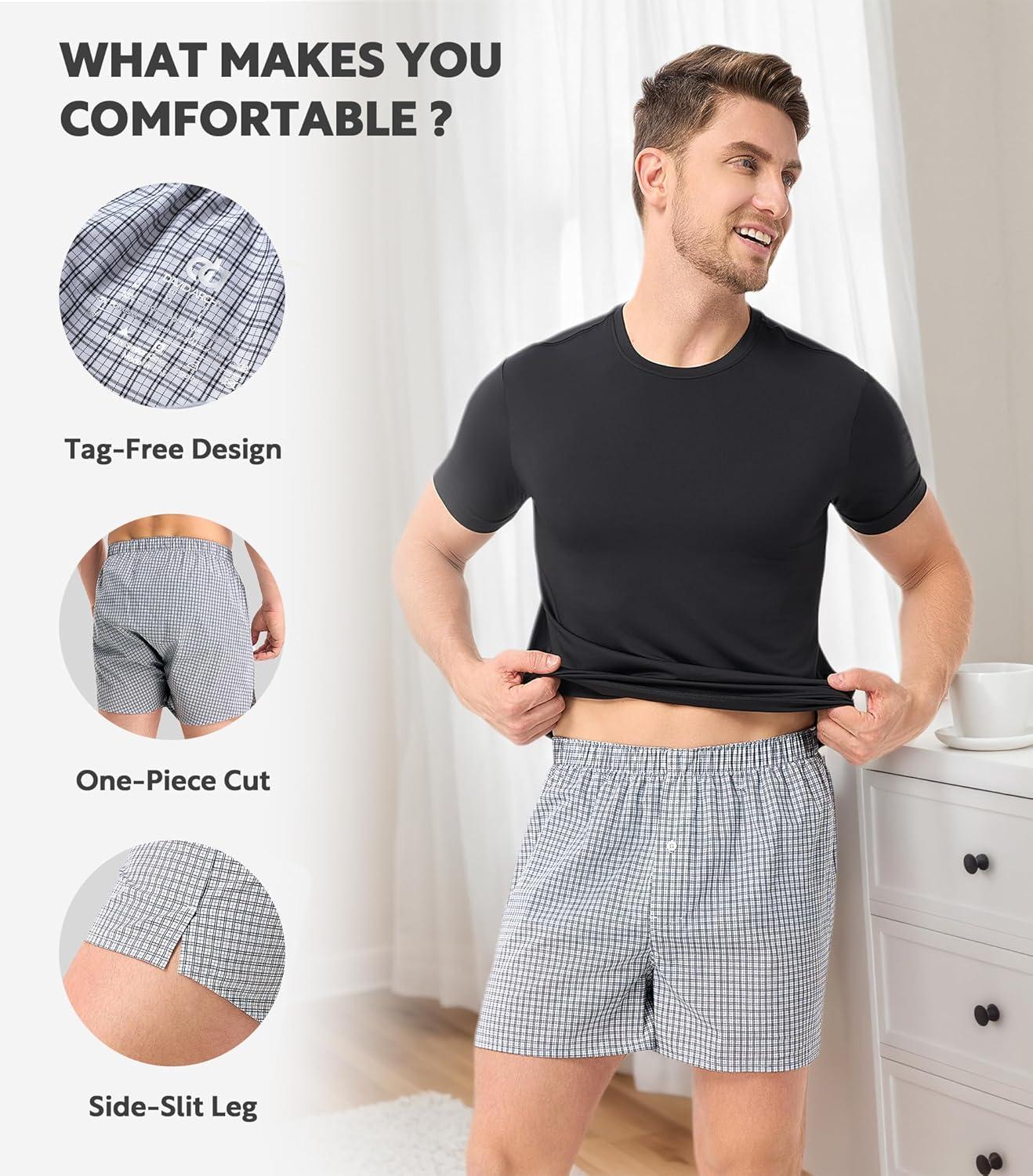 DAVID ARCHY Woven Cotton Boxers for Men Classic Men’s Underwear Loose Breathable & Comfortable Boxer Shorts 3 or 5 Pack(Navy Gingham Checks / Solid Slate Gray / Light Blue Microchecks)