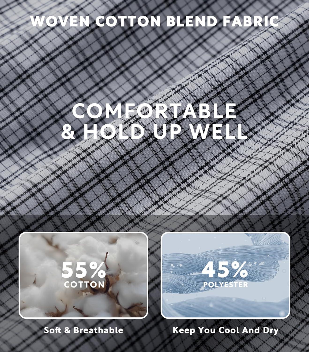 DAVID ARCHY Woven Cotton Boxers for Men Classic Men’s Underwear Loose Breathable & Comfortable Boxer Shorts 3 or 5 Pack(Navy Gingham Checks / White Blue Plaid / Cream Pinstripes)