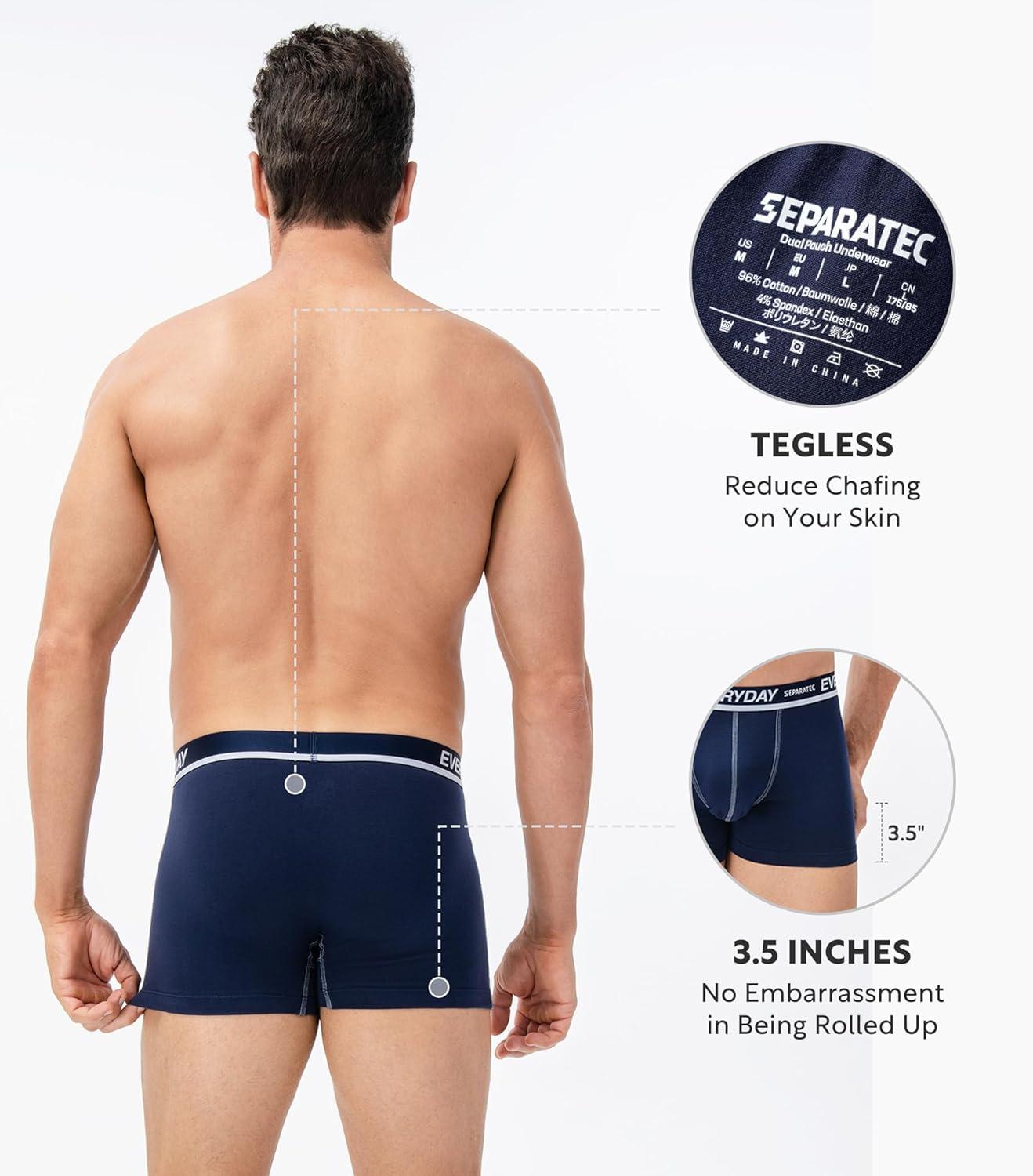 Separatec Cotton Dual Pouch Men’s Underwear Comfortable Soft Breathable Everyday Boxer Briefs for men 7 Pack(Black*7 Pack)