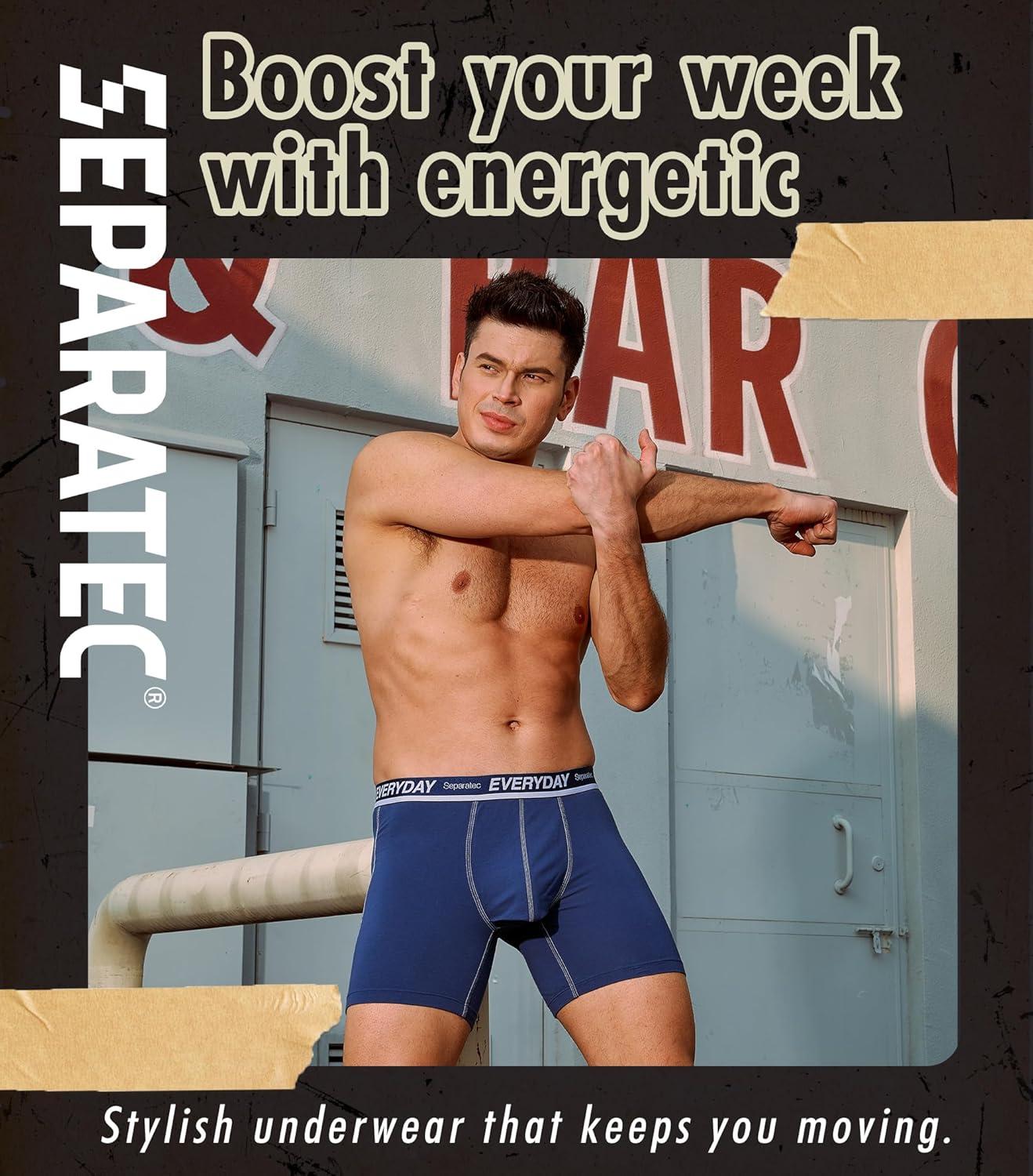 Separatec Cotton Dual Pouch Men’s Underwear Comfortable Soft Breathable Everyday Boxer Briefs for men 7 Pack(Gray Blue/Dark Blue/Olive Green/Black/Dark Gray/Dark Grape Purple/Gray Purple)