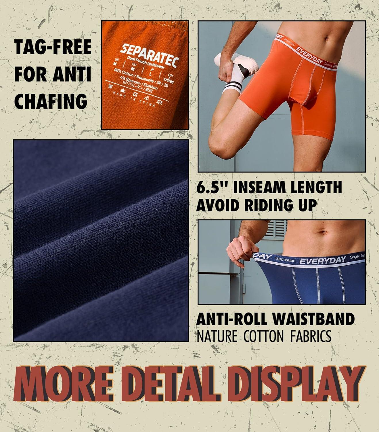 Separatec Cotton Dual Pouch Men’s Underwear Comfortable Soft Breathable Everyday Boxer Briefs for men 7 Pack(Starter Pack (3 Pieces) – Black)