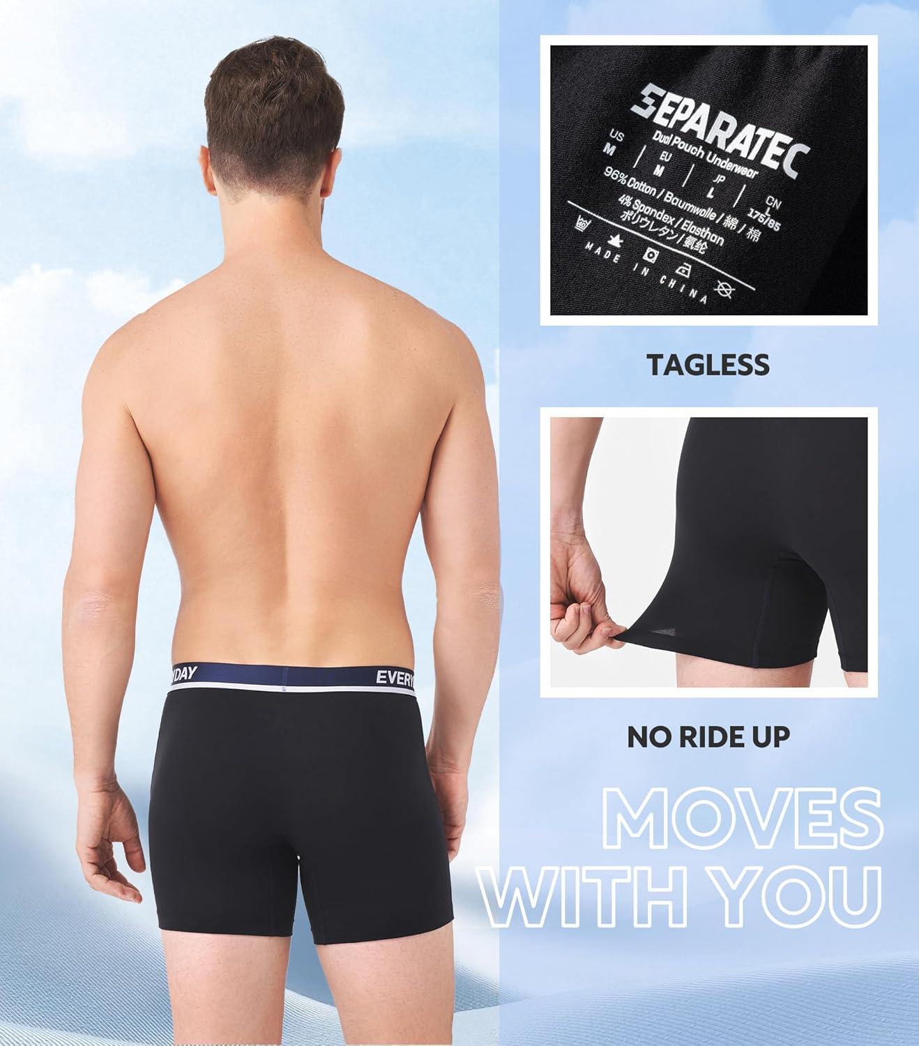 Separatec Cotton Dual Pouch Men's Underwear Comfortable Soft Breathable Everyday Boxer Briefs for men 7 Pack(Starter Pack (3 Pieces) - Black)