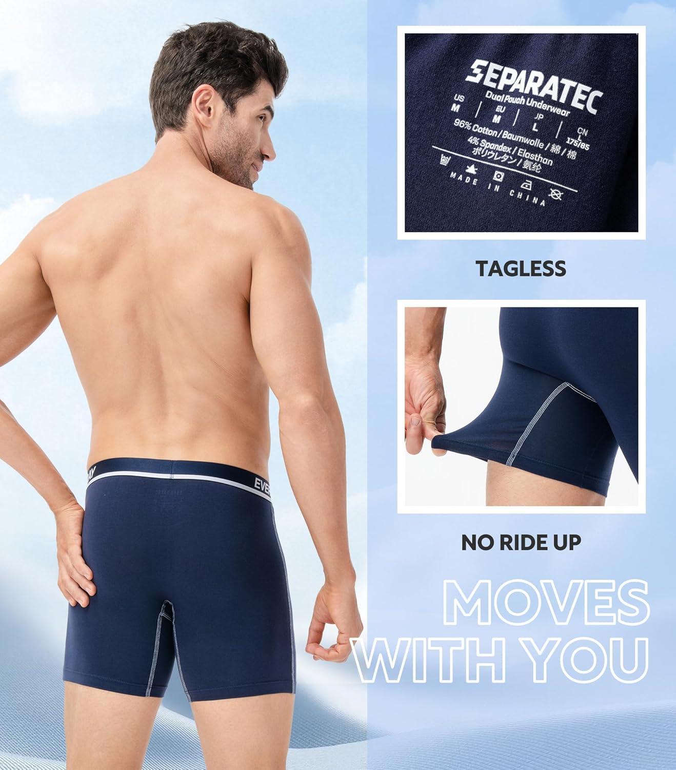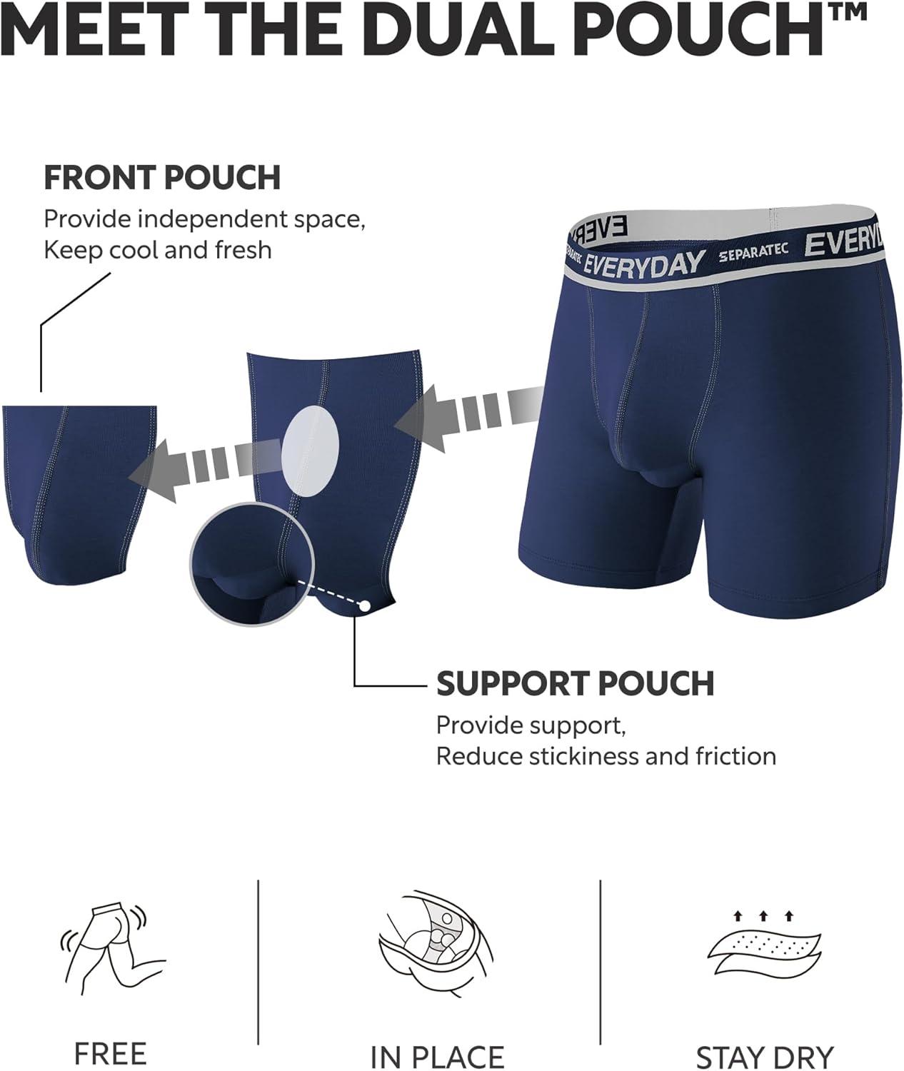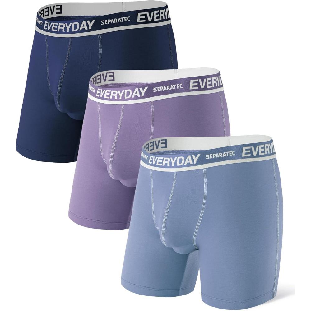Separatec Cotton Dual Pouch Men’s Underwear Comfortable Soft Breathable Everyday Boxer Briefs for men 7 Pack(Starter Pack (3 Pieces) – Grey Blue /Dark Blue/Grey Purple)